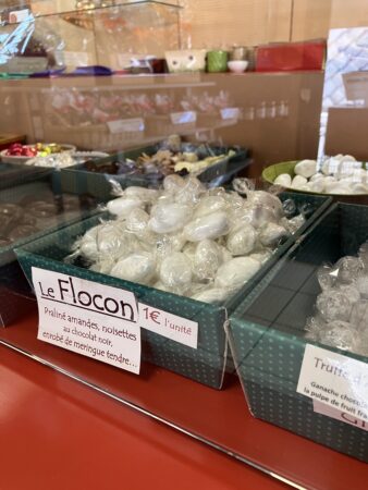 - La Couronne des Baronnies, sa spécialité, composée d’un praliné croustillant surmonté de guimauves, le tout enrobé de chocolat.